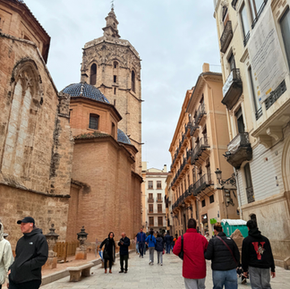 In Cuenca, we woke up a little after 6 AM to get ready for our train to Valencia. The bus stop was 2 mins from where we were staying and cost 2.50 e exact cash to ride from Cuenca to the train station (about a 15 min ride). Unlike Madrid which took 20 mins walking to navigate the station to find our gate, the Cuenca station was itty-bitty, and our gate was right at the entrance. Naturally, when we aren't in a rush to our reach our transport, our high-speed train was delayed. This delay unfortunately caused our car to merge with another car, forcing twice the amount of people to fit on one train. I’m really glad Uri was there to translate the problem/solution because it would’ve been very confusing and stressful for me alone, but we made it through just fine.Â
