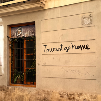 Of course, we had to seek out la casa de los gatos, a tiny blue cat house painted on the exterior of another wall which was the gateway for cats to come in and out onto the street. In real time, we saw a cat exit, and us along with two other tourists gasped with excitement. Since this hidden gem is surely a tourist trap, we couldn't help but notice graffiti spray painted nearby––tourist go home. We saw a few of these messages throughout Andalusia, though we didn't experience direct hostility like that in Barcelona or Paris.