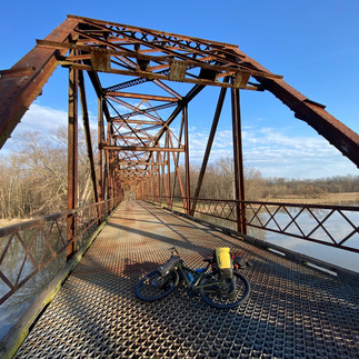 About 4 miles into the morning ride, I was thwarted by a bridge closure: concrete blocks and a metal gate barricaded the crossing. I considered backtracking and finding another way, though I wasn't convinced that the other route would be any better. So, I called Mike and he said with enough confidence that I could still get across just fine (the bridge wasn't compromised and at risk of falling into the river–– my main concern). So, I wrangled my bike over the blocks and gate on both sides and continued on my merry way. Crisis adverted.